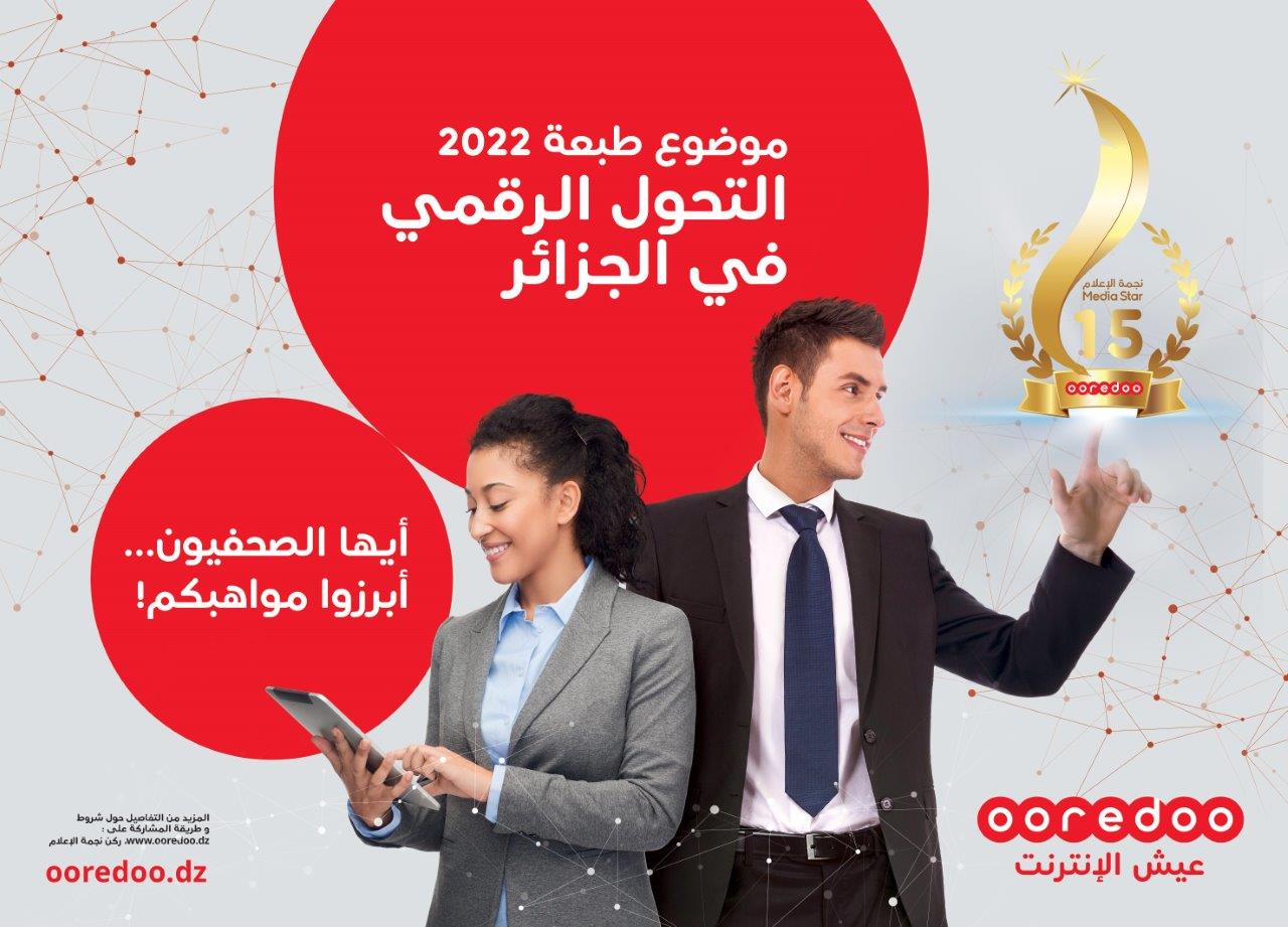 مواصلةً استراتيجيتها الموجهة نحو الرّقمنة، تُعلم Ooredoo الصحفيين الجزائريين المحترفين بمختلف وسائل الإعلام (الصحافة المكتوبة والالكترونية والإذاعة والتلفزة ووكالات الأنباء)، الراغبين في المشاركة في الطبعة الخامسة عشر من مسابقة نجمة الاعلام الصحفية، بإمكانهم ارسال اعمالهم عبر المنصة الرقمية المخصصة لهذا الغرض.