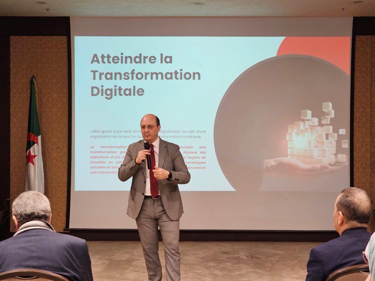 مستندا على الاحصائيات والارقام، أشار المحاضر إلى أن الجزائر، التي تتميز بمساحتها الشاسعة، وبمواطنيها الشباب المتصلين بالإنترنت، تحظى بدعم السلطات العمومية من خلال إرساء إطار قانوني مناسب يسمح بتسهيل التحول الرقمي الذي يشمل مختلف القطاعات كالتعليم والصحة والتجارة.