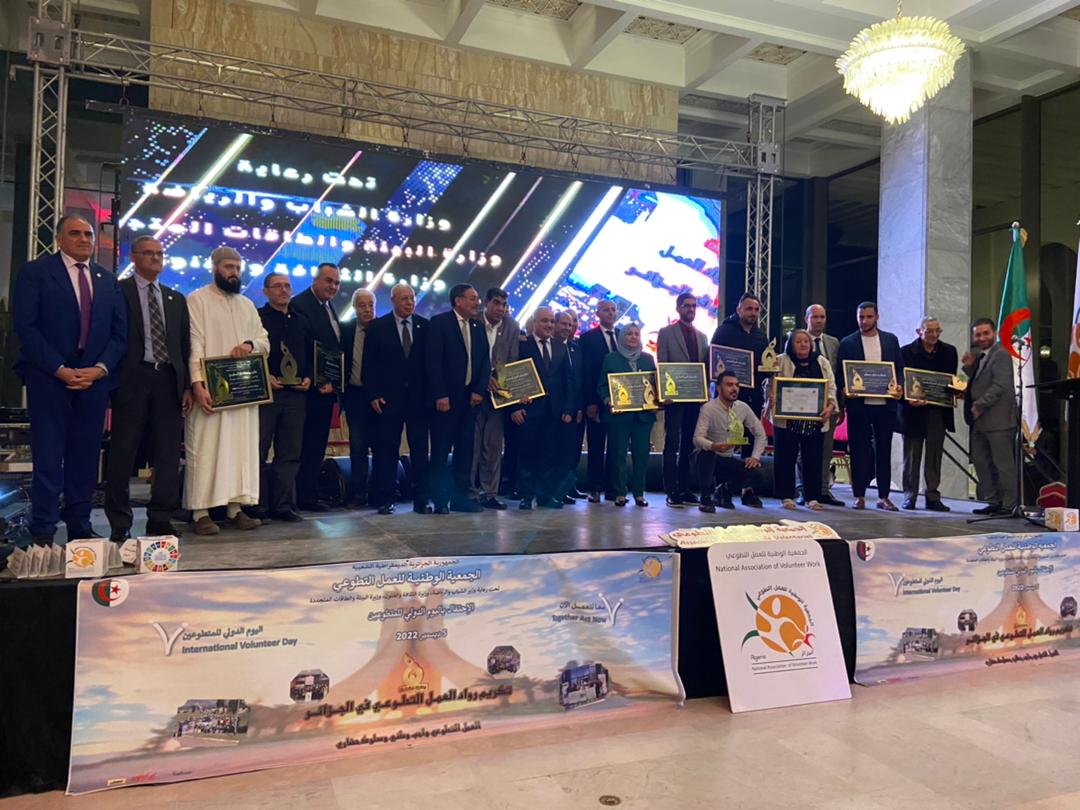 À l’occasion de la Journée internationale des Volontaires, coïncidant avec le 5 décembre de chaque année, l’Association nationale du Volontariat a organisé, le lundi 05 décembre 2022, au Palais de la Culture - MOUFDI Zakaria à Alger, une cérémonie au cours de laquelle elle a honoré les meilleures initiatives individuelles et collectives dans le domaine du volontariat et de la Responsabilité Sociétale des Entreprises (RSE) en Algérie.
