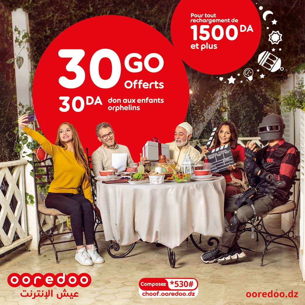 Avec cette promotion spéciale Ramadhan, accessible à travers tout le territoire national, Ooredoo offre à ses clients l’opportunité de vivre pleinement une expérience Internet unique durant ce mois de partage et de contribuer au soutien des enfants orphelins.