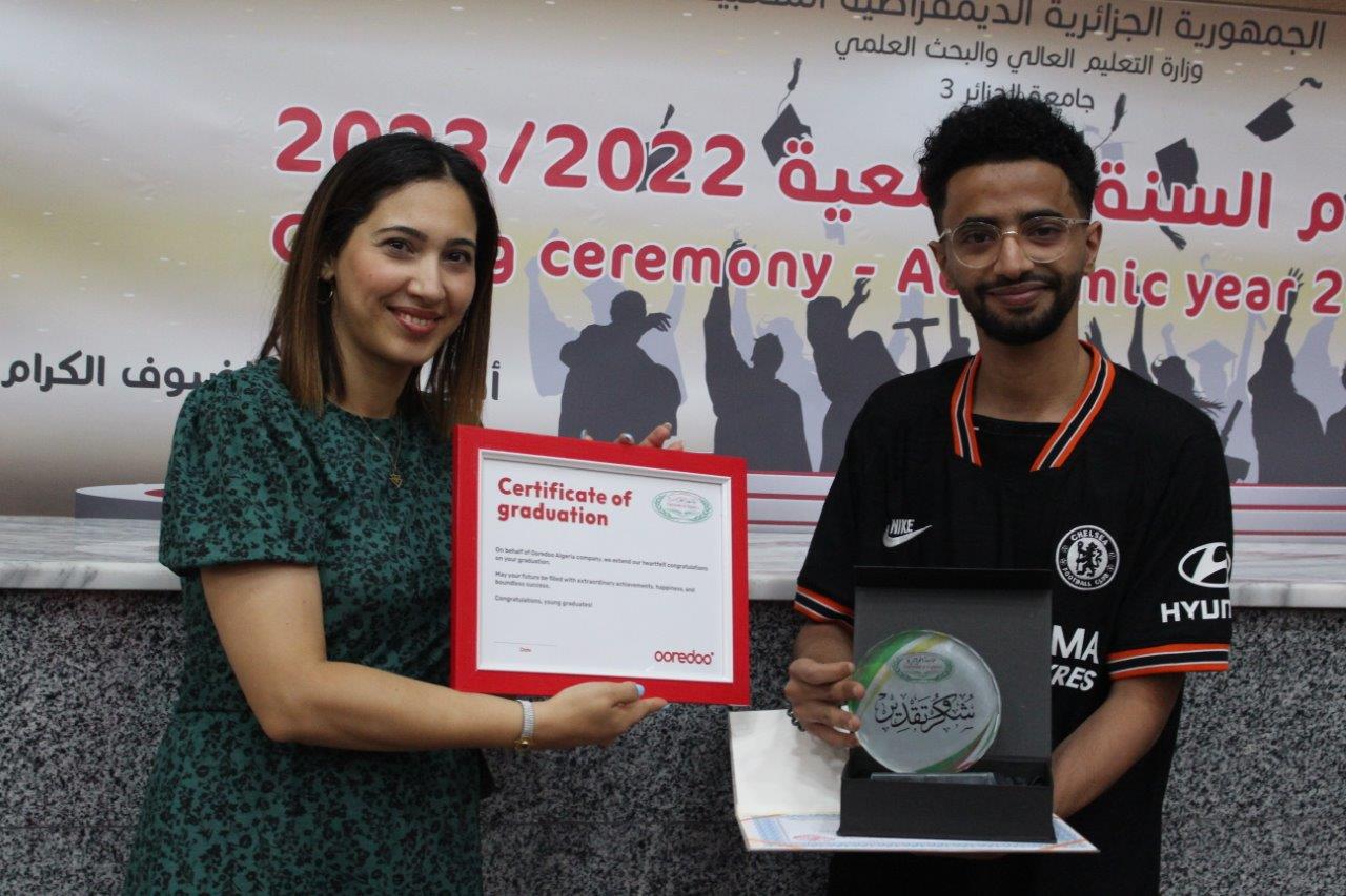 Entreprise technologique promotrice de l’apprentissage des étudiants algériens, Ooredoo a accompagné l'Université d'Alger 3, lors de la cérémonie organisée ce jeudi 20 juillet 2023, en l’honneur des étudiants majors de leurs promotions dans diverses spécialités relevant de la faculté des sciences économiques, de la faculté des sciences commerciales et sciences de gestion, la faculté des sciences de l’Information et de la Communication, la faculté des Sciences politiques et des Relations Internationales et de l’institut de l’Education Physique et Sportive.